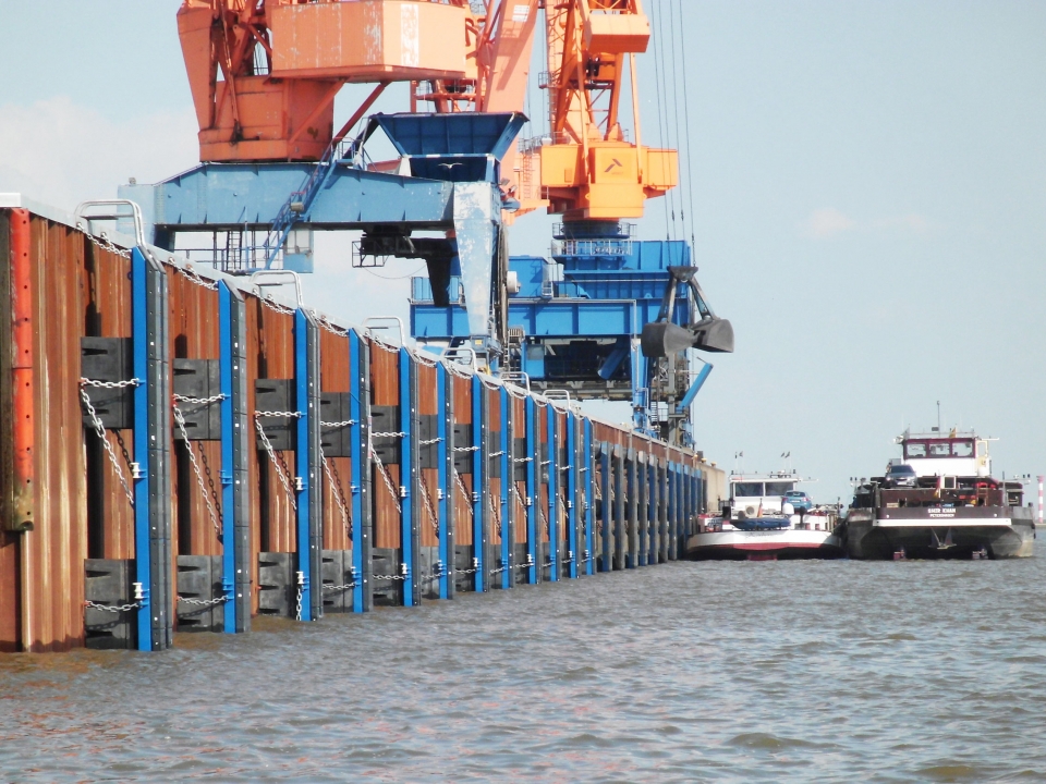 Der Elbehafen Brunsbüttel, eingeweiht im Jahre 1968 und ein Hafen der privaten SCHRAMM group, ist in einer weiteren Ausbaustufe ertüchtigt worden. Bereits vor gut 10 Jahren wurde ein Teil des östlichen Elbehafens teilweise neu vorgespundet. Nun wurde der mittlere Liegeplatz des Elbehafens, der Universalliegeplatz für Massen- und insbesondere Stückgüter wie z.B. Windkraftanlagen, für die nächsten Jahrzehnte fit gemacht und auf die Anforderungen der Zukunft ausgerichtet. Im Rahmen der Baumaßnahme wurde eine neue tragfähigere Spundwand gesetzt und vorgerammt. Die Wasserbaustelle wurde durch die Tiefbau Unterweser GmbH, die TAGU, ausgeführt.
