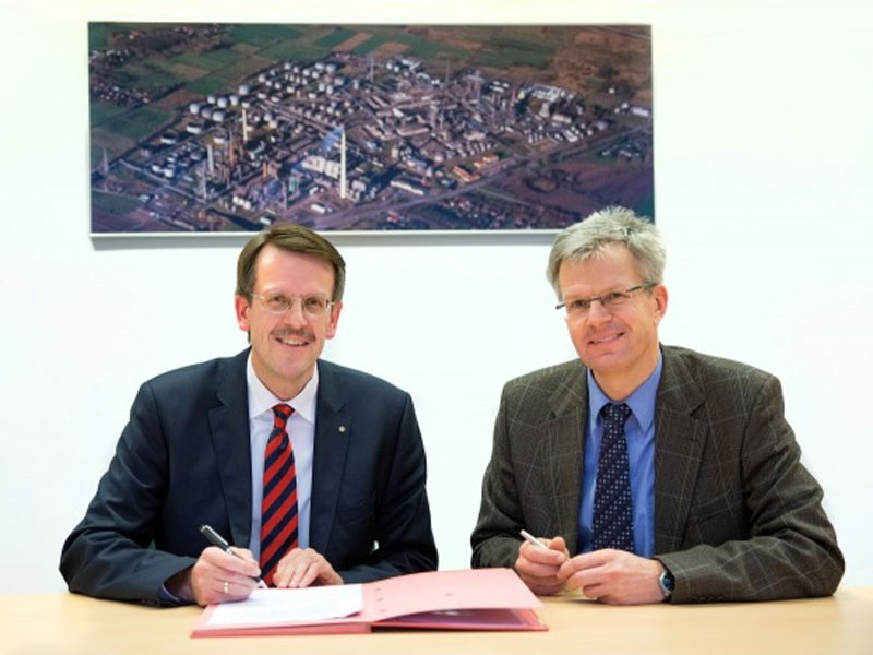 Heide, Brunsbüttel, 11. Dezember 2012. – Um fünf Jahre verlängerten heute Thomas Gerber und Frank Schnabel, Geschäftsführer der Raffinerie Heide GmbH und der Brunsbüttel Ports GmbH, mit ihren Unterschriften den seit 1977 bestehenden Dienstleistungsvertrag, der die Modalitäten des Rohölumschlages regelt.